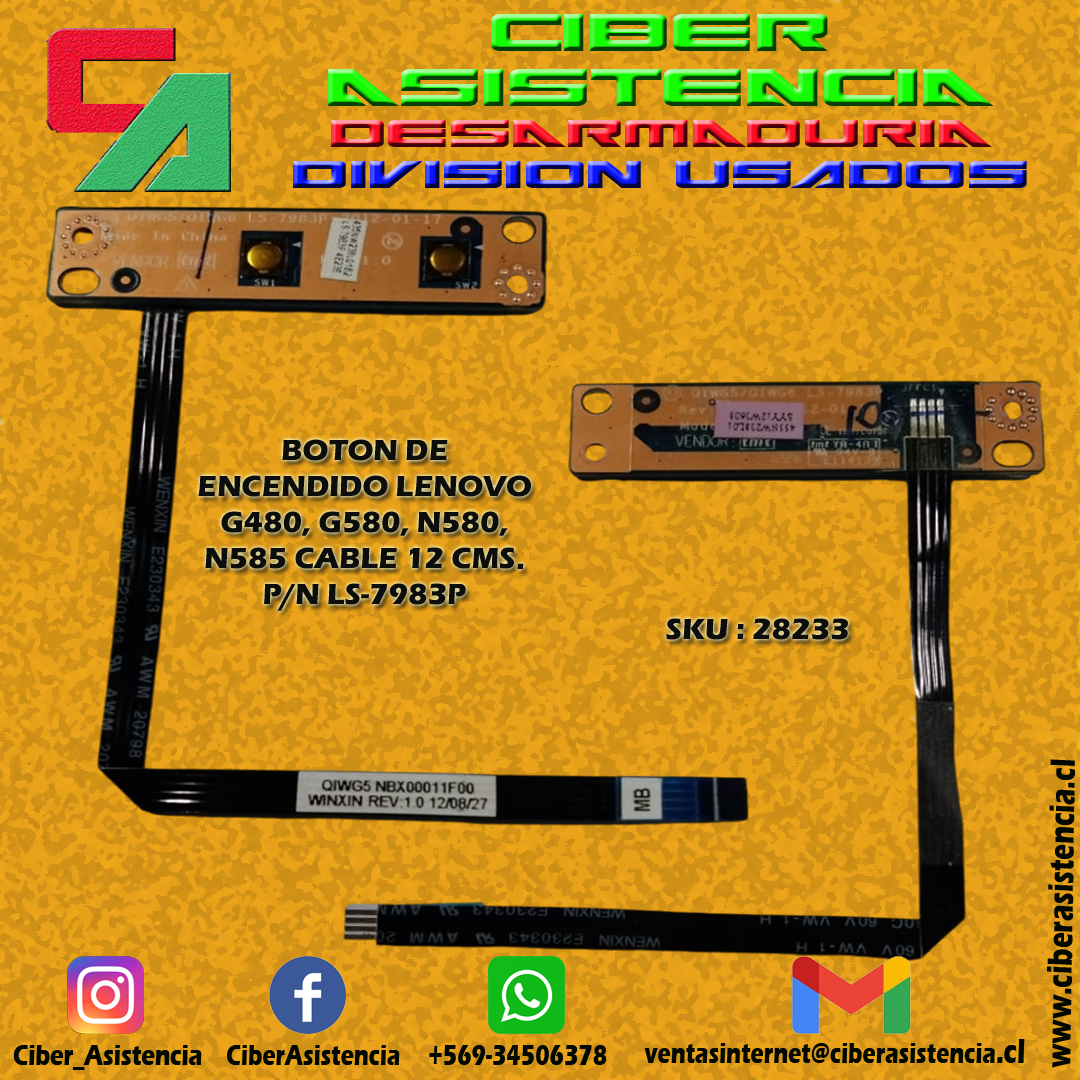 BOTON DE ENCENDIDO LENOVO G480, G580, N580, N585 CABLE 12 CMS.