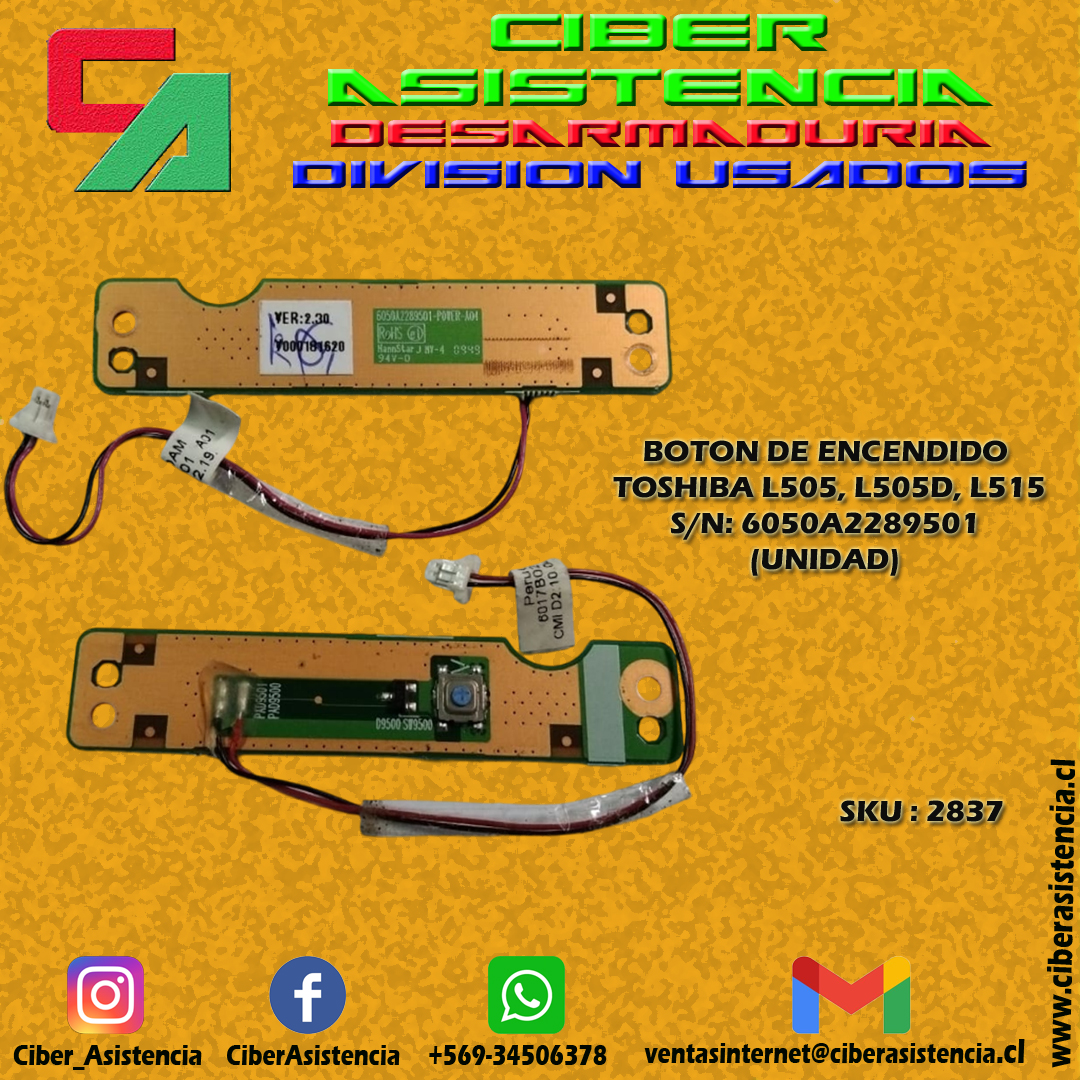 BOTON DE ENCENDIDO TOSHIBA L505, L505D, L515 S/N: 6050A2289501 (UNIDAD)
