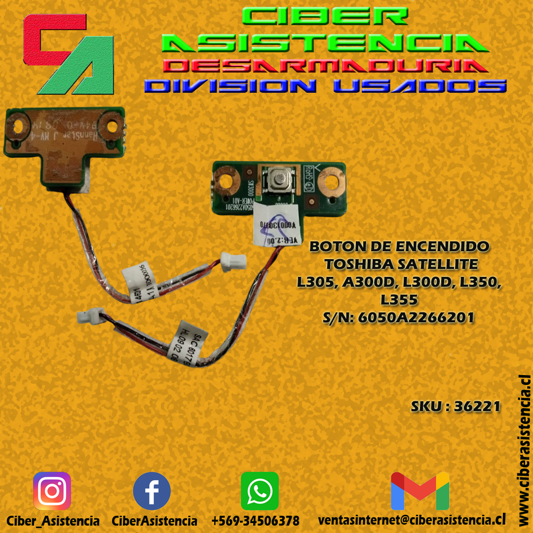 BOTON DE ENCENDIDO TOSHIBA SATELLITE L305, A300D, L300D, L350, L355 S/N: 6050A2266201