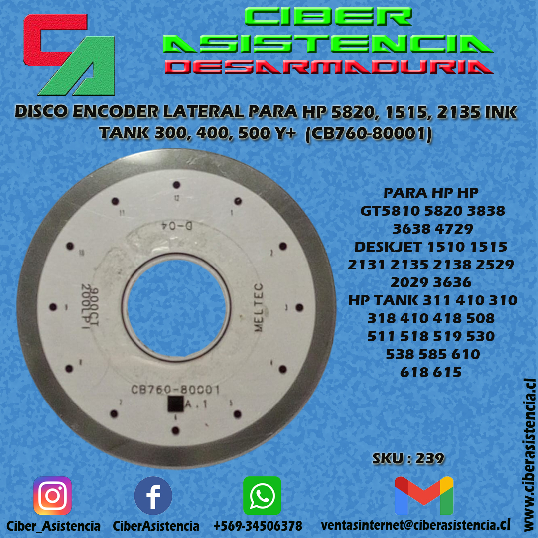 CINTA ENCODER IMPRESORA HP GT5820 INK TANK 315 415 SMART 530 Y+